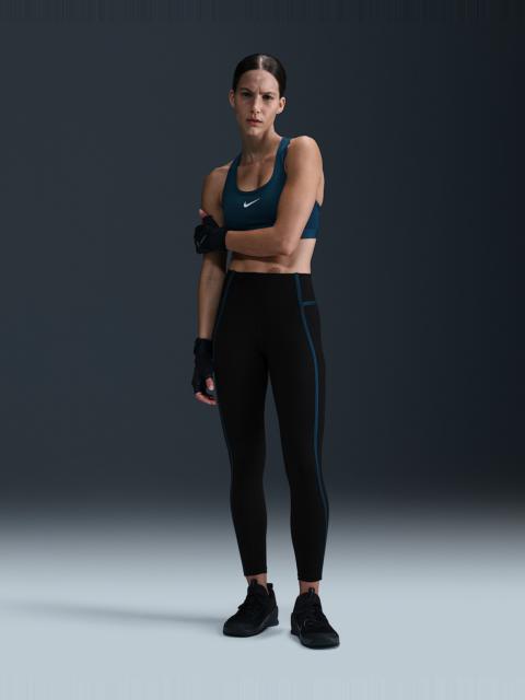 Nike One works for it all. These nonsheer leggings help keep you covered with midweight, peachy-soft fabric that stretches with your every move. Benefits - Nike Dri-FIT technology moves sweat away from your skin for quicker evaporation, helping you stay dry and comfortable. - Back pocket fits most phones. - Taping adds definition and contrast. Product Details - Reflective Swoosh logo at center back - Not intended for use as Personal Protective Equipment (PPE) - Body/Waist lining: 80% polyester/20% spandex. Gusset lining: 100% polyester. - Machine wash - Imported - Shown: Dark Team Red/Armory Navy/Black - Style: HJ1137-619 SIZE & FIT Model is wearing size S and is 5′10″178cm Tight fit: snug and form-fitting Gentle support: feels ke a soft hug with plenty of freedom 78 length: hits at ankle High-Waisted: sits at or above your natural waist for more coverage