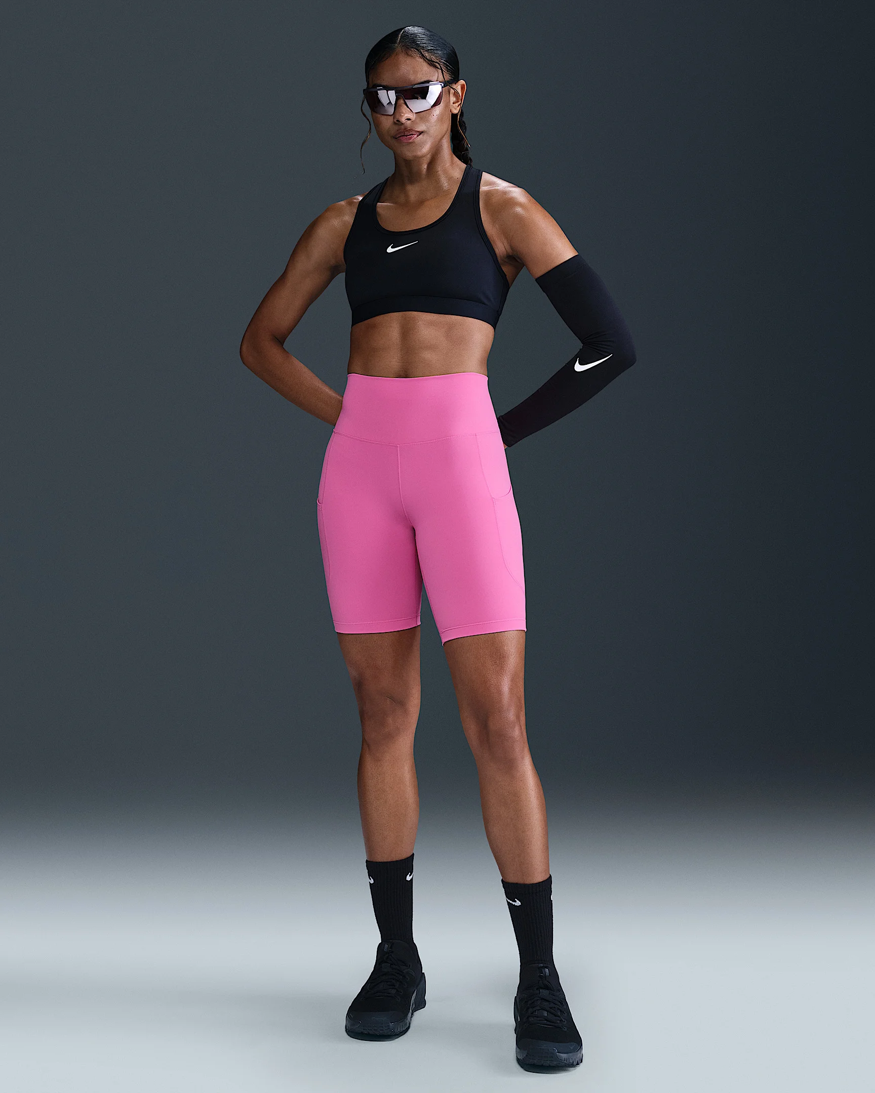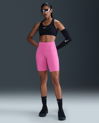 Up for a workout or down to chill, these biker shorts are the Ones that are ready for whatever you are. Their midweight, peachy-soft fabric stretches with your every move and dries quickly. Plus, a high waist is designed to meet your favorite cropped tops for a head-to-toe look that you can feel confident and comfortable in all day long. Product Details - Body: 80% polyester/20% spandex. Gusset lining: 100% polyester. - Machine wash - Imported - Not intended for use as Personal Protective Equipment (PPE) - Shown: Playful Pink/Black - Style: FZ6758-675 SIZE & FIT Model is wearing size S and is 5′10″178cm Tight fit: snug and form-fitting Gentle support: feels ke a soft hug with plenty of freedom High-Waisted: sits at or above your natural waist for more coverage