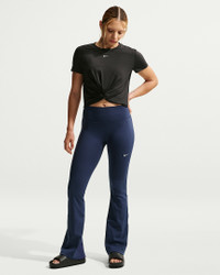 Nike One works for it all. These nonsheer flared leggings help keep you covered with midweight, peachy-soft fabric that stretches with your every move. Benefits - Nike Dri-FIT technology moves sweat away from your skin for quicker evaporation, helping you stay dry and comfortable. - Midweight, peachy-soft fabric stretches with your every move and dries quickly. - Absence of a front seam helps keep the fabric from riding up for a smooth fit. - Back pocket fits most phones. Product Details - Swoosh logo - 80% polyester/20% spandex - Machine Wash - Imported - Shown: Midnight Navy/White - Style: IB9135-410 SIZE & FIT Tight fit: snug and form-fitting Fl length: hits below ankle
