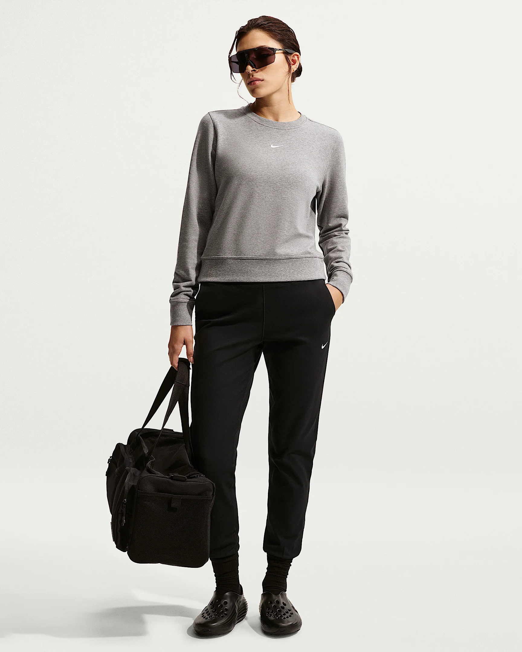 Whether its leg day or rest day, stay comfortable all-day in these sweat-wicking joggers. Midweight, peachy-soft fabric stretches with every move and the high-waisted fit provides additional coverage. Benefits - Nike Dri-FIT technology moves sweat away from your skin for quicker evaporation, helping you stay dry and comfortable. - Midweight, peachy-soft fabric stretches with your every move and dries quickly. Product Details - Side pockets - Elastic waistband and cuffs - Body: 80% polyester/20% spandex; Pocket Bags: 75% polyester/13% cotton/12% rayon; Gusset Lining: 100% polyester; - Machine Wash - Imported - Shown: Black/White - Style: IB9139-010 SIZE & FIT Model is wearing size S and is 5'9"174cm Standard fit: easy and traditional Fl length: hits below ankle