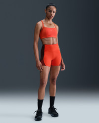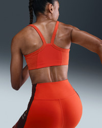 All-day comfort or low-impact workouts, this bra is the One. Its light support gives you a gentle hold with plenty of freedom. Midweight, peachy-soft fabric and a soft mesh lining wick sweat, helping you stay dry and comfortable through it all. Benefits - Nike Dri-FIT technology moves sweat away from your skin for quicker evaporation, helping you stay dry and comfortable. - Removable pads let you choose your coverage. Product Details - Elastic chest band - Swoosh logo on front - Heathered panels - Body/Interlining: 80% polyester/20% spandex. Lining: 84% polyester/16% spandex. Pad top fabric/Pad back fabric: 100% polyester. Pad: 100% polyurethane. - Machine Wash - Imported - Shown: Picante Red/Cosmic Clay/Heather/White - Style: HQ2807-633 SIZE & FIT Model is wearing size S Model height: 5′10″178cm Model bust: 31″79cm Tight fit: snug and form-fitting Light support: feels ke a soft hug with plenty of freedom