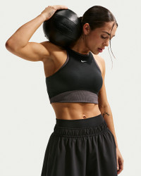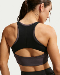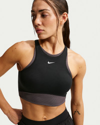 All-day comfort or dynamic workouts, this bra is the One. Its medium support gives you a snug hold that helps keep everything in place while midweight, peachy-soft fabric pairs with a ribbed lining that dries quickly and stretches with you. Benefits - Nike Dri-FIT technology moves sweat away from your skin for quicker evaporation, helping you stay dry and comfortable. - Midweight, peachy-soft fabric stretches with your every move and dries quickly. - Medium support gives you a snug hold that helps keep everything in place. - Removable pads let you choose your coverage. Product Details - Soft ribbed panels - Removeable - Body/Interlining: 80% polyester/20% spandex; Lining: 84% polyester/16% spandex; Pad Top/Back Fabric: 100% polyester; Pad: 100% polyurethane. - Machine wash - Imported - Shown: Black/Thunder Grey/White - Style: IB9932-010 SIZE & FIT Model is wearing size S Model height: 5′6″168cm Model bust: 32″81cm Tight fit: snug and form-fitting