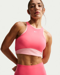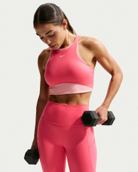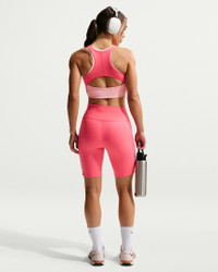 All-day comfort or dynamic workouts, this bra is the One. Its medium support gives you a snug hold that helps keep everything in place while midweight, peachy-soft fabric pairs with a ribbed lining that dries quickly and stretches with you. Benefits - Nike Dri-FIT technology moves sweat away from your skin for quicker evaporation, helping you stay dry and comfortable. - Midweight, peachy-soft fabric stretches with your every move and dries quickly. - Medium support gives you a snug hold that helps keep everything in place. - Removable pads let you choose your coverage. Product Details - Soft ribbed panels - Removeable - Body/Interlining: 80% polyester/20% spandex; Lining: 84% polyester/16% spandex; Pad Top/Back Fabric: 100% polyester; Pad: 100% polyurethane. - Machine wash - Imported - Shown: Sea Coral/Bleached Coral/White - Style: IB9932-897 SIZE & FIT Model is wearing size S Model height: 5′6″168cm Model bust: 32″81cm Tight fit: snug and form-fitting