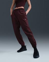 Nike One works for it all. Lightweight and water-repellent, these roomy woven pants stretch with you through every move. Benefits - Water-repellent finish helps keep you dry in wet weather. - Side pockets are lined with sweat-wicking mesh to help keep your essentials dry Product Details - Encased elastic waistband with drawcord - Elastic cuffs - Printed Swoosh logo on left thigh - Body: 85% polyester/15% spandex. Mesh: 100% polyester. - Machine wash - Imported - Shown: Burgundy Crush/White - Style: IH8611-652 SIZE & FIT Model is wearing size S and is 5′9″175cm Loose fit: roomy and relaxed Fl length: hits below ankle