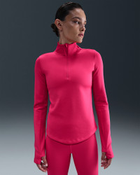Bring on the cold. This heat-regulating mid layer is unbelievably soft and cozy while high stretch fabric keeps you ready to move. It's updated with thumbholes to give you extra coverage. Benefits - Nike Therma-FIT technology helps manage your body’s natural heat to help keep you warm in cold-weather conditions. - Thumbholes let you extend your coverage and help hold the sleeves in place while you move. - Unbelievably soft on inside and smooth on the outside. Product Details - Zipper guard at neck - 80% polyester/20% spandex - Machine wash - Imported - Not intended for use as Personal Protective Equipment (PPE) - Shown: Rush Pink - Style: HV3688-632 SIZE & FIT Model is wearing size S and is 5′9″175cm Standard fit: easy and traditional