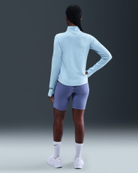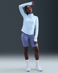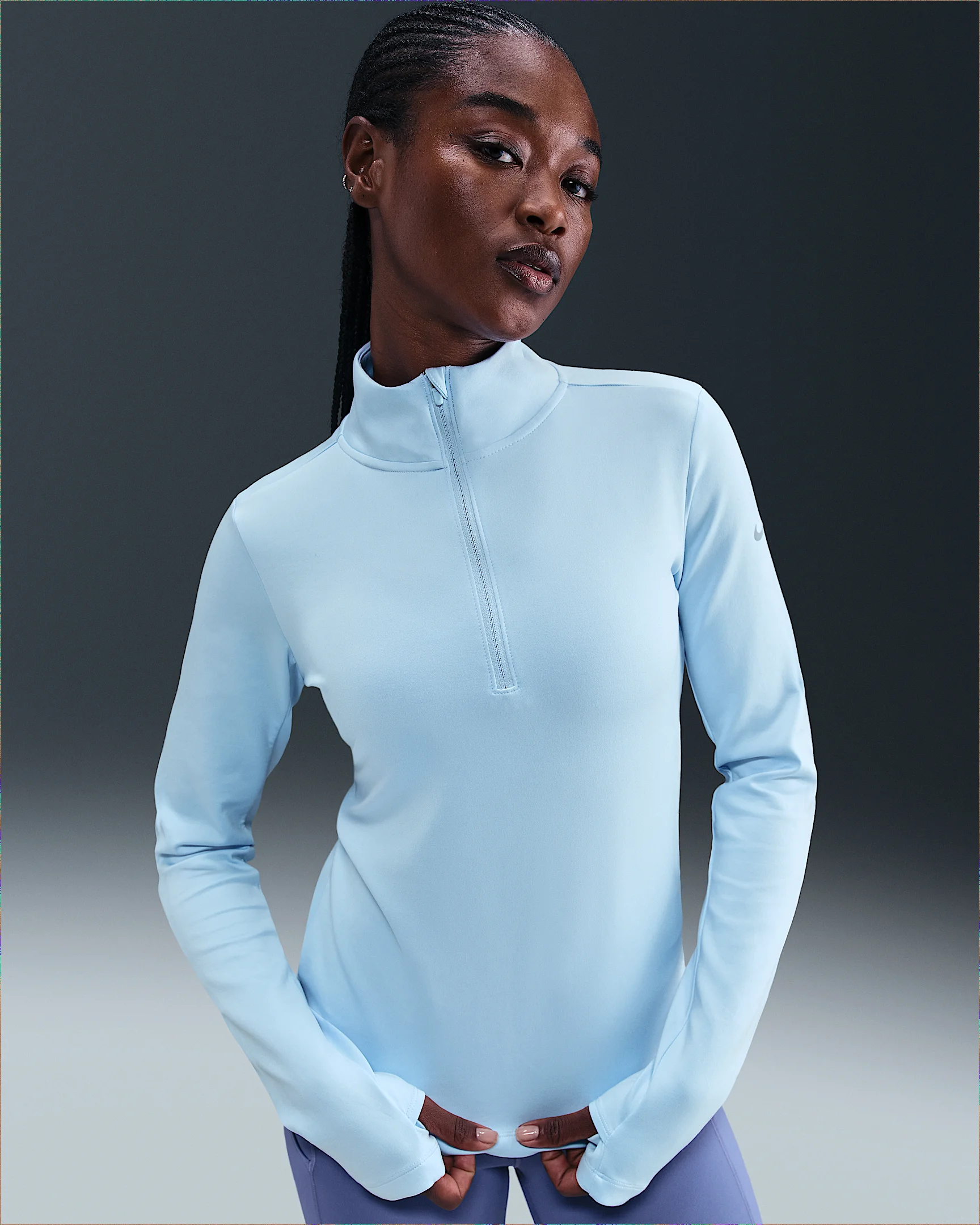 Bring on the cold. This heat-regulating mid layer is unbelievably soft and cozy while high stretch fabric keeps you ready to move. It's updated with thumbholes to give you extra coverage. Benefits - Nike Therma-FIT technology helps manage your body’s natural heat to help keep you warm in cold-weather conditions. - Thumbholes let you extend your coverage and help hold the sleeves in place while you move. - Unbelievably soft on inside and smooth on the outside. Product Details - Zipper guard at neck - 80% polyester/20% spandex - Machine wash - Imported - Not intended for use as Personal Protective Equipment (PPE) - Shown: Celestine Blue - Style: HV3688-441 SIZE & FIT Model is wearing size S and is 5′8″173cm Standard fit: easy and traditional