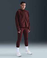 Don't let the cold put an end to your training. Brushed on both sides for a soft and fuzzy feel, this lightweight fleece layer uses our heat-regulating tech to help you stay warm. A spacious fit and curved back hem give you extra coverage. Benefits - Nike Therma-FIT technology helps manage your body’s natural heat to help keep you warm in cold-weather conditions. - Ideal for layering and low-profile warmth, this lightweight fleece is brushed on both sides for all-around fuzzy comfort. - Thumbholes let you extend your coverage and help hold the sleeves in place while you move. - Oversized fit with dropped shoulders provides a spacious feel. Product Details - Body: 100% polyester. Pocket bag palm side: 75% polyester/13% cotton/12% rayon. - Front pockets - Embroidered Swoosh logo at chest - Zipper guard at neck - Machine wash - Imported - Shown: Burgundy Crush/White - Style: HV3698-652 SIZE & FIT Model is wearing size S and is 5′9″175cm Oversized fit: exaggerated and spacious