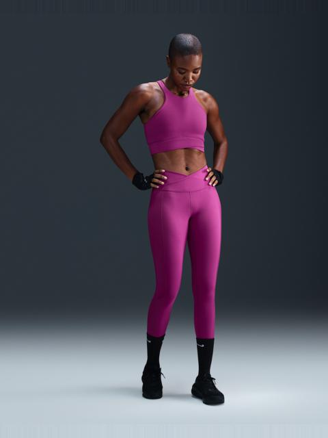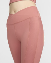 Up for a workout or down to chill, these leggings are the Ones that are ready for whatever you are. Their midweight, peachy-soft fabric stretches with your every move and dries quickly. A wrapped waistband that crosses in the front works with ribbed side panels to add extra dimension to your look. More Benefits - Nike Dri-FIT technology moves sweat away from your skin for quicker evaporation, helping you stay dry and comfortable. - Back pocket fits most phones. Product Details - Body/Waist lining: 80% polyester/20% spandex. Gusset lining: 100% polyester. - Machine wash - Imported - Reflective elements - Not intended for use as Personal Protective Equipment (PPE) - Shown: Canyon Pink/White - Style: FV7857-634 SIZE & FIT Model is wearing size S and is 5′9″175cm Tight fit: snug and form-fitting Gentle support: feels ke a soft hug with plenty of freedom 78 length: hits at ankle High-Waisted: sits at or above your natural waist for more coverage