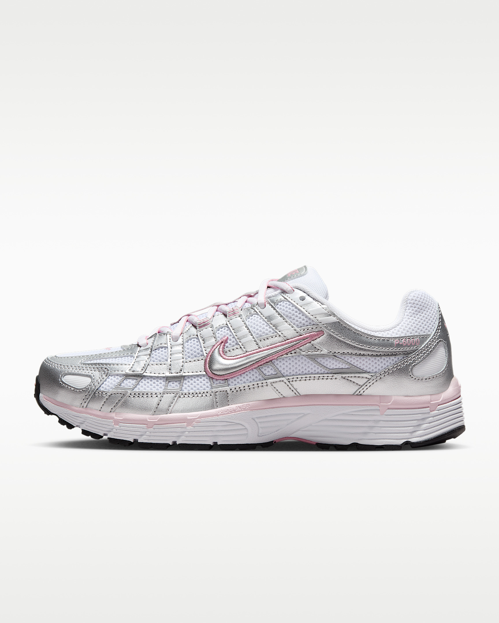 A mash-up of Pegasus' past, the Nike P-6000 features breathable mesh with horizontal and vertical overlays for a 2000s running look that is as striking as, say, a majestic winged horse. Drawing on the design of the Nike Pegasus 25 and 2006, its running aesthetic meets all-day comfort for the streets. Benefits - Leather, textile and synthetic upper gives comfortable support. - Design draws on the Nike Pegasus 25 and Nike Pegasus 2006. - Foam midsole provides lightweight cushioning. - Cushioned sockliner delivers a comfortable underfoot feel. - Rubber outsole gives durable traction. Product Details - Shown: White/Elemental Pink/Black/Metallic Silver - Style: BV1021-108