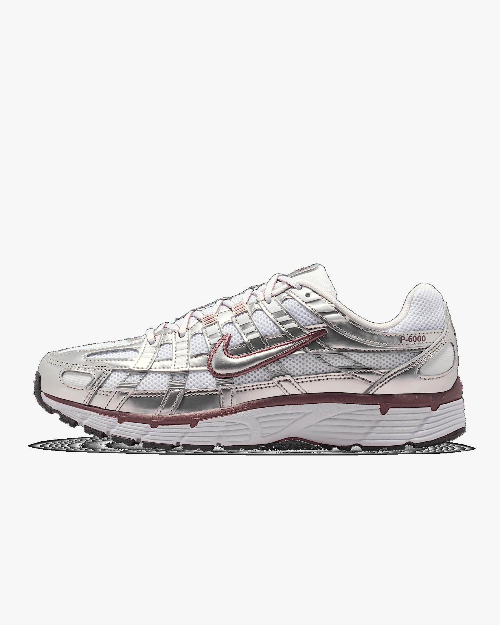 A mash-up of Pegasus' past, the Nike P-6000 features breathable mesh with horizontal and vertical overlays for a 2000s running look that is as striking as, say, a majestic winged horse. Drawing on the design of the Nike Pegasus 25 and 2006, its running aesthetic meets all-day comfort for the streets. Benefits - Leather, textile and synthetic upper gives comfortable support. - Design draws on the Nike Pegasus 25 and Nike Pegasus 2006. - Foam midsole provides lightweight cushioning. - Cushioned sockliner delivers a comfortable underfoot feel. - Rubber outsole gives durable traction. Product Details - Shown: White/Metallic Silver/Black/Tattoo - Style: BV1021-110