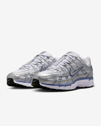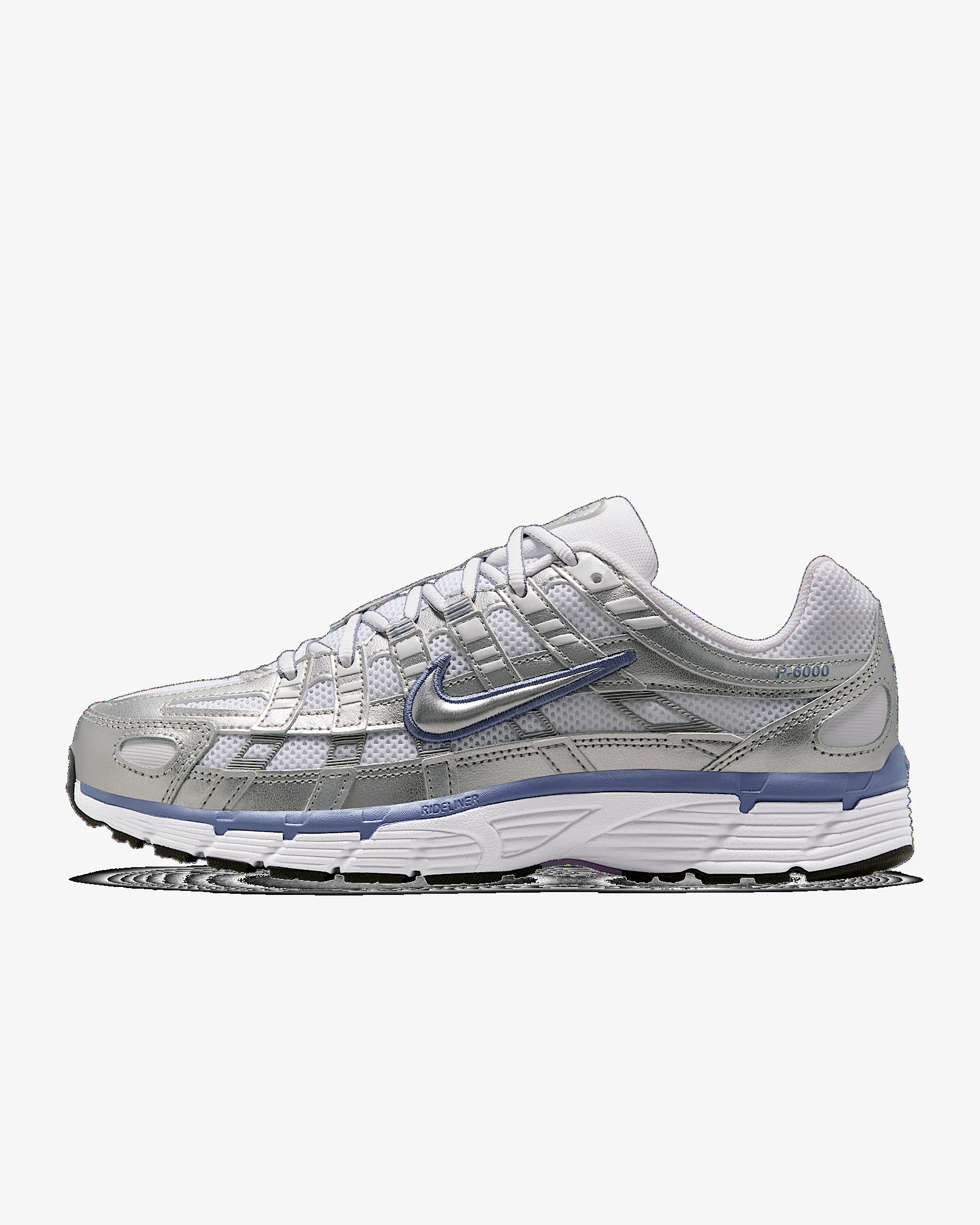 A mash-up of Pegasus' past, the Nike P-6000 features breathable mesh with horizontal and vertical overlays for a 2000s running look that is as striking as, say, a majestic winged horse. Drawing on the design of the Nike Pegasus 25 and 2006, its running aesthetic meets all-day comfort for the streets. Benefits - Leather, textile and synthetic upper gives comfortable support. - Design draws on the Nike Pegasus 25 and Nike Pegasus 2006. - Foam midsole provides lightweight cushioning. - Cushioned sockliner delivers a comfortable underfoot feel. - Rubber outsole gives durable traction. Product Details - Shown: Metallic Silver/White/Black/World Indigo - Style: BV1021-014