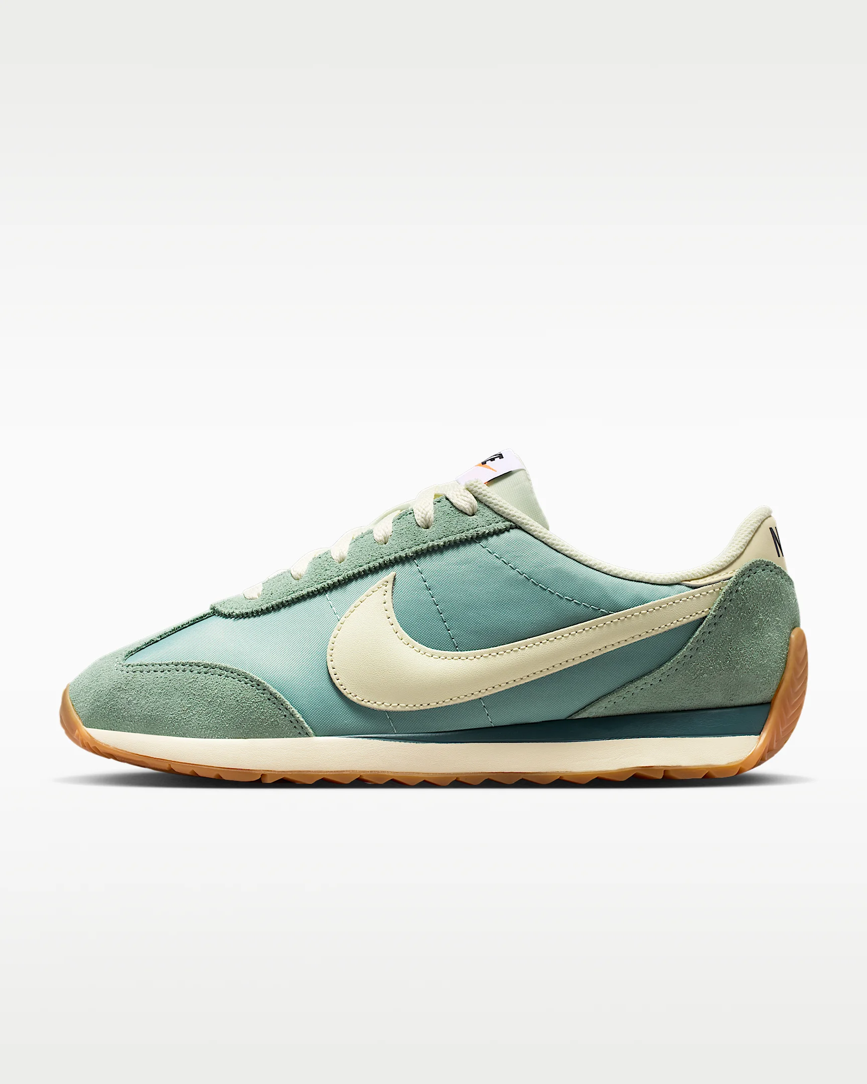 The Nike Pacific takes inspiration from old-school styles to give you a new kind of low-profile look. Leather and suede are topped with a puffed Swoosh logo, and a herringbone sole with flex grooves adds a '70s vibe with a twist. Benefits - Leather and suede create a layered look that lasts. - Wide collar opening captures the proportions of '70s running style. - Herringbone gum sole with flex grooves provides grip from heel to toe. Product Details - Puffed Swoosh logo - Foam midsole - Shown: Steam/Mineral Slate/Gum Light Brown/Coconut Milk - Style: HM4771-001