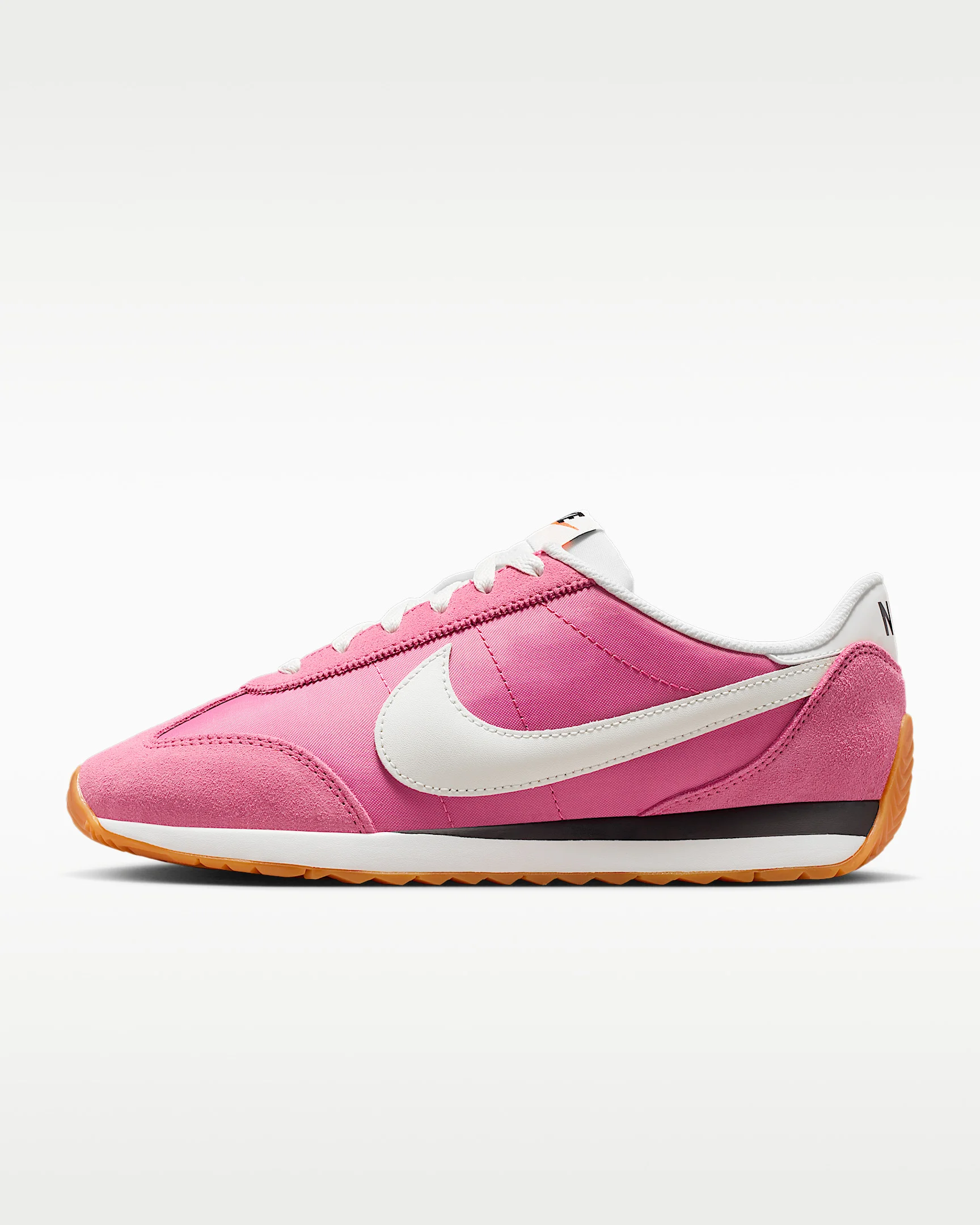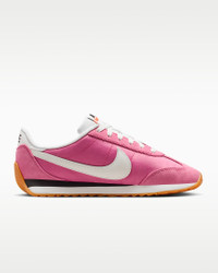 The Nike Pacific takes inspiration from old-school styles to give you a new kind of low-profile look. Leather and suede are topped with a puffed Swoosh logo, and a herringbone sole with flex grooves adds a '70s vibe with a twist. Benefits - Leather and suede create a layered look that lasts. - Wide collar opening captures the proportions of '70s running style. - Herringbone gum sole with flex grooves provides grip from heel to toe. Product Details - Puffed Swoosh logo - Foam midsole - Shown: Peony/Black/Gum Light Brown/Sail - Style: HM4771-606