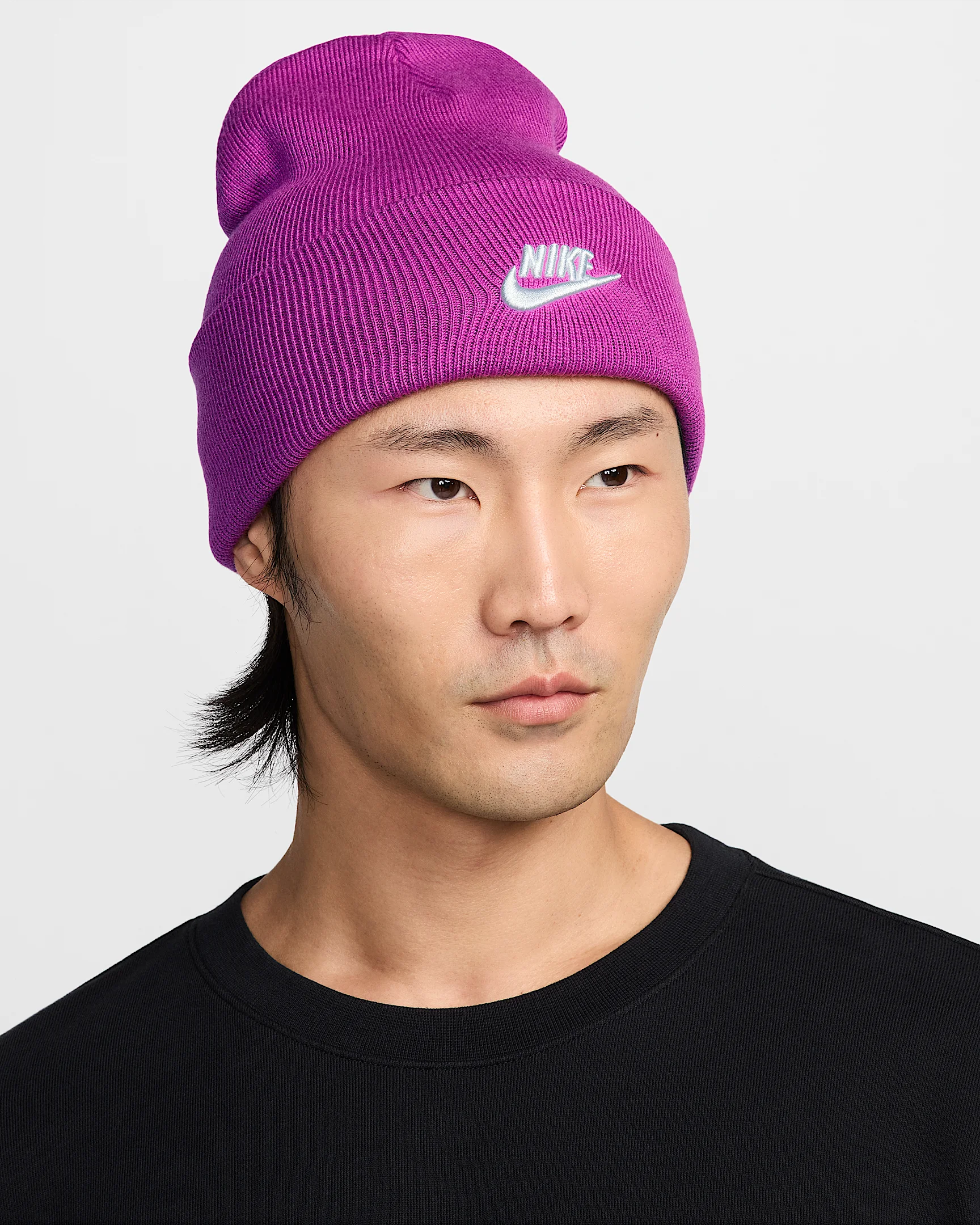 This classic beanie has a casual mid-depth design and supersoft knit construction. Benefits - Peak beanies all have a classic mid depth that’s versatile for everyday wear. Product Details - Embroidered Nike Futura logo - 80-100% polyester/0-20% nylon - Material percentages may vary. Check label for actual content. - Hand wash - Imported - Shown: Hot Fuchsia/White - Style: HF0186-518