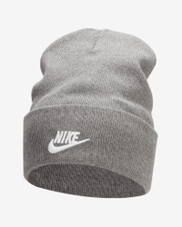 Crafted for warmth, comfort and style, our Nike Peak beanie brings the goods for any cool weather outing. The cuffed design with an embroidered Nike Futura logo on the cuff is classic and easy to style. Feeling slouchy? Uncuff it. Going for the fisherman look? Cuff it up and let it ride a bit higher. Benefits - Nike Peak is a mid-depth classic beanie that’s versatile enough for your everyday needs. - Soft knit yarns feel warm and snug on your head. - Cuffed design lets you wear it how you like. Product Details - Embroidered Nike Futura logo at center cuff - Body/Lining: 50% cotton/50% polyester. - Hand wash - Imported - Shown: Carbon Heather/White - Style: FB6528-091