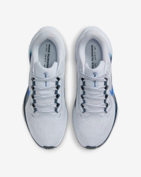 Responsive cushioning in the Pegasus provides an energized ride for everyday road running. Experience lighter-weight energy return with dual Air Zoom units and a ReactX foam midsole. Plus, improved engineered mesh on the upper decreases weight and increases breathability. More Benefits - ReactX foam midsole - Lighter, more breathable engineered mesh upper Product Details - Weight: Approx. 251g/8.9oz (Women's US 8) - Heel-to-toe drop: 10mm - MR-10 Last - Our best, most consistent fit (same as Pegasus 40) - Reflective details - Not intended for use as Personal Protective Equipment (PPE) - Shown: Football Grey/Armory Navy/White/Hyper Royal - Style: FD2723-006