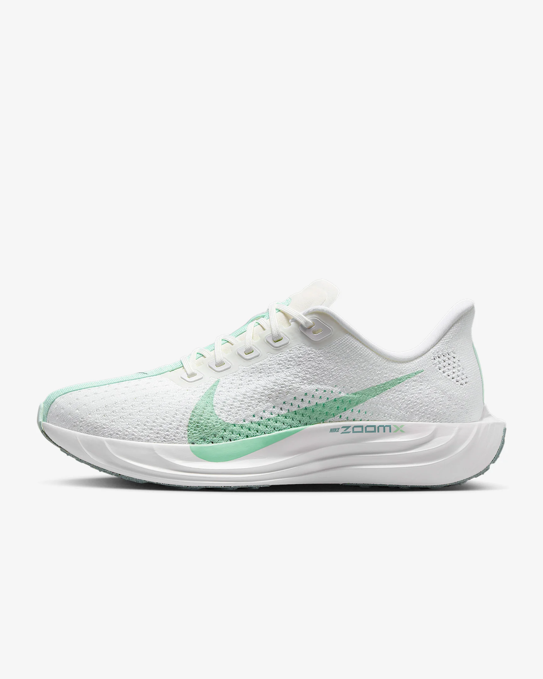Take responsive cushioning to the next level with the Pegasus Plus. It energizes your ride with full-length, superlight ZoomX foam to give you a high level of energy return for everyday runs. And a stretchy Flyknit upper conforms to your foot for a seamless fit. Product Details - Weight: Approx. 205g/7.2oz (Women’s US 8) - Heel-to-toe drop: 10mm - Midfoot band for containment - Reflective details - Not intended for use as Personal Protective Equipment (PPE) - Shown: White/Cannon/Mint Foam - Style: FQ7261-103 SIZE & FIT Fits small; we recommend ordering a half size up