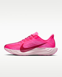 Take responsive cushioning to the next level with the Pegasus Plus. It energizes your ride with full-length, superlight ZoomX foam to give you a high level of energy return for everyday runs. And a stretchy Flyknit upper conforms to your foot for a seamless fit. Product Details - Weight: Approx. 205g/7.2oz (Women’s US 8) - Heel-to-toe drop: 10mm - Midfoot band for containment - Reflective details - Not intended for use as Personal Protective Equipment (PPE) - Shown: Hyper Pink/Playful Pink/Pink Foam/Sweet Beet - Style: FQ7261-603 SIZE & FIT Fits small; we recommend ordering a half size up