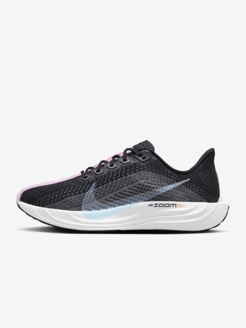 Take responsive cushioning to the next level with the Pegasus Plus. It energizes your ride with full-length, superlight ZoomX foam to give you a high level of energy return for everyday runs. And a stretchy Flyknit upper conforms to your foot for a seamless fit. Benefits - Flyknit upper has perforations to help reduce the weight of the shoe and make it more breathable. - ZoomX foam midsole offers springy cushioning. - High-abrasion rubber on outsole provides traction. - Midfoot band helps keep you contained. Product Details - Weight: Approx. 205 g/7.2 oz (Women’s US 8) - Heel-to-toe drop: 10 mm - Not intended for use as Personal Protective Equipment (PPE) - Shown: Light Orewood Brown/Sail/Gum Light Brown/Coconut Milk - Style: FQ7261-100