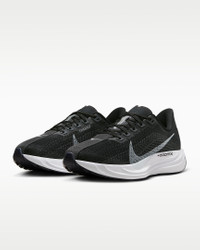 Responsive cushioning in the Pegasus provides an energized ride for everyday road running. Experience the highest energy return compared to previous Pegasus Turbos with a ZoomX foam midsole. Plus, stretchy Flyknit on the upper conforms to your foot for a seamless fit. Benefits - Flyknit on upper has perforations to help reduce the weight of the shoe and make it more breathable. - ZoomX foam midsole offers springy cushioning. - High-abrasion rubber on outsole provides traction. - Midfoot band helps keep you contained. Product Details - Weight: Approx. 205 g/7.2 oz (Women’s US 8) - Heel-to-toe drop: 10 mm - Not intended for use as Personal Protective Equipment (PPE) - Shown: Black/Anthracite/White/Pure Platinum - Style: FQ7261-002