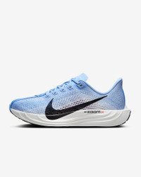 Take responsive cushioning to the next level with the Pegasus Plus. It energizes your ride with full-length, superlight ZoomX foam to give you a high level of energy return for everyday runs. And a stretchy Flyknit upper conforms to your foot for a seamless fit. Benefits - Flyknit upper has perforations to help reduce the weight of the shoe and make it more breathable. - ZoomX foam midsole offers springy cushioning. - High-abrasion rubber on outsole provides traction. - Midfoot band helps keep you contained. Product Details - Weight: Approx. 205 g/7.2 oz (Women’s US 8) - Heel-to-toe drop: 10 mm - Not intended for use as Personal Protective Equipment (PPE) - Shown: Aluminum/Royal Pulse/White/Black - Style: FQ7261-402