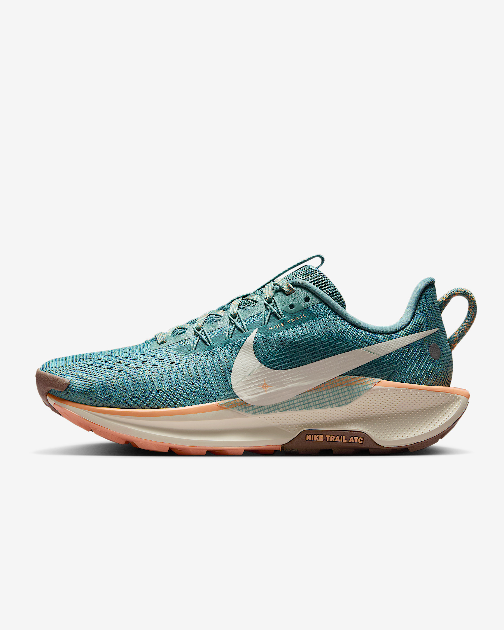 Spread your wings and see what nature brings as you chase earthy paths in the Peg Trail 5. Now equipped with an ultra-responsive ReactX foam midsole, this shoe is a true dual threat raring to cross the divide between dirt and drives. More Benefits - ReactX foam midsole - Nike Trail ATC outsole Product Details - Weight: Approx. 243g/8.6oz (Women's US 8) - Heel-to-toe drop: 9.5mm - Reflective details - Not intended for use as Personal Protective Equipment (PPE) - Shown: Cannon/Mink Brown/Orange Chalk/Soft Pearl - Style: DV3865-010 SIZE & FIT Fits small; we recommend ordering a half size up