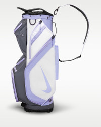 Enjoy the green in ultimate comfort with the Nike Performance Cart Golf Bag. This durable, lightweight design has a strap-through design that makes it easy to secure to your cart. A 14-way, full-length divider helps you stay organized, while a water-resistant rain hood offers coverage for your clubs in wet weather. Benefits - An insulated pocket helps keep food and beverages cold. - Utility webbing makes it easy to stash and access accessories. Product Details - 100% polyester - Spot clean - Imported - Shown: White/Iron Grey - Style: N1002004-124