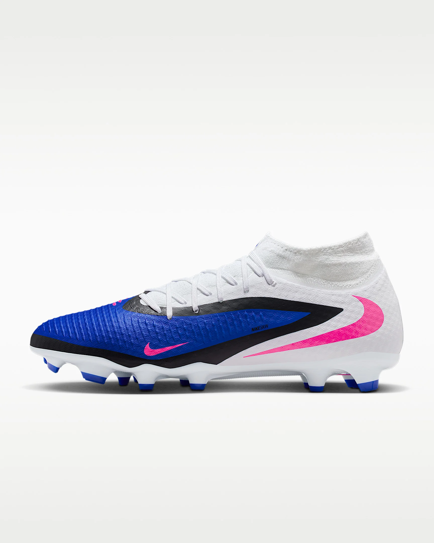 Level up your accuracy with the Phantom 6 Academy. It powers your precision with a NikeSkin touch zone, located where you need it for clean strikes. The grippy texture helps you take advantage of scoring opportunities by bringing your foot closer to the ball. Product Details - For use on natural and synthetic surfaces - Cushioned sockliner - Shown: Racer Blue/White/Pink Blast - Style: HQ2278-446