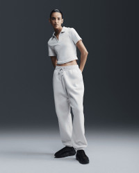 Grounded in style, comfort and versatility, meet our take on luxury loungewear. Whether you're running errands or rewatching your favorite show, these midweight fleece sweats feel extra soft on the inside to help keep you cozy. The oversized fit is intended to sit high on your hips for comfort and a stay-put feel. Benefits - Encased elastic waistband and drawstrings ensure a fit that feels just right. - Pockets provide quick storage for keys, phone and cold hands. Product Details - 80% cotton/20% polyester - Embroidered Swoosh logo on left leg - Machine wash - Imported - Shown: Light Orewood Brown/Sail - Style: FZ5996-104 SIZE & FIT Model is wearing size S and is 5′11″180cm Oversized fit: exaggerated and spacious Fl length: hits below ankle