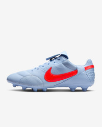 The Nike Premier 3 gets back to the basics with a timeless silhouette wrapped in supple leather—helping you to move confidently as an unstoppable force on the field. Product Details - For use on slightly wet, short-grass fields - Cushioned insole - Shown: Royal Tint/Bright Crimson - Style: HM0265-400 SIZE & FIT Snug fit; if you prefer a sghtly looser fit, we recommend ordering a half-size up