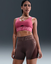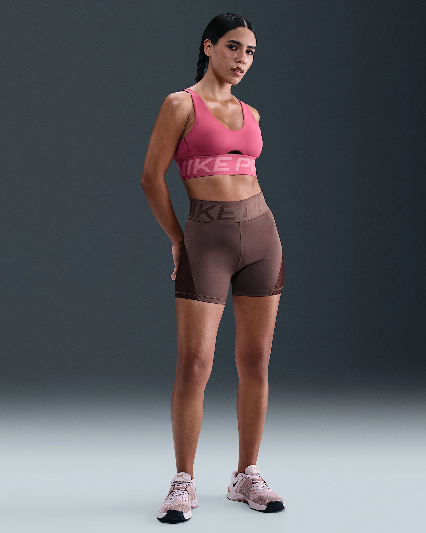 Go hard, stay cool. Thicker and stretchier than our classic Nike Pro material, these sweat-wicking shorts smooth and offer optimal cooling with mesh panels. Product Details - Mesh panels - Nike Pro branding - Swoosh logo - Body: 75% polyester/25% spandex; Panels: 66% nylon/34% spandex; Waistband: 84% nylon/spandex - Machine Wash - Imported - Shown: Tattoo/Burgundy Crush/White - Style: IB9103-502 SIZE & FIT Model is wearing size S and is 5′7″170cm Tight fit: snug and form-fitting High-Waisted: sits at or above your natural waist for more coverage