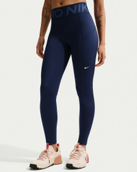 Push yourself harder in these pocketed Nike Pro Sculpt leggings. Thicker and stretchier than our classic Nike Pro material, midweight fabric delivers a smoothing sensation that elevates your workout look. Plus, their wider elastic waistband adds to a more secure feeling as you go for your deepest squat or heaviest lift. Because shaping up isn't just about working out—it's about what you wear while you do it, too. Product Details - 75% polyester/25% spandex - Machine wash - Imported - Shown: Midnight Navy/White - Style: FV7388-410 SIZE & FIT Model is wearing size S and is 5'3"160cm Tight fit: snug and form-fitting Firm support: feels ke locked in support that keeps motion to a minimum 78 length: hits at ankle High-Waisted: sits at or above your natural waist for more coverage
