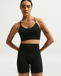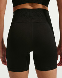 Your favorite go-to gym essential now has a seamless look. Lightweight and stretchy, these biker shorts are made with smooth fabric that dries quickly to help you stay ready when your workout heats up. Benefits - Nike Dri-FIT technology moves sweat away from your skin for quicker evaporation, helping you stay dry and comfortable. - No front seam helps keep the fabric from riding up for a smooth fit. - Soft and stretchy fabric has strategically placed ribbed zones for shaping. Product Details - Nike Pro branding on waistband - 47% polyester/46% nylon/7% spandex - Machine Wash - Imported - Shown: Black - Style: IF1210-010 SIZE & FIT Model is wearing size M and is 5'3"160cm Tight fit: snug and form-fitting High-Waisted: sits at or above your natural waist for more coverage