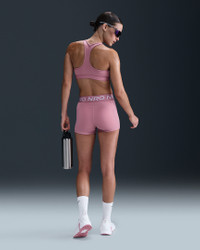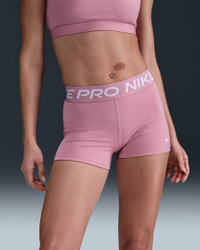 The Nike Pro Shorts are made with stretchy, sleek and supportive fabric that wicks sweat to help you stay dry and comfortable during your workout. This product is made with at least 50% recycled polyester fibers. Benefits - Nike Dri-FIT technology helps you stay dry, comfortable and focused. - A wide, mid-rise elastic waistband feels supportive around your core. Product Details - Tight fit for a body-hugging feel - 78-83% polyester/17-22% spandex - Material percentages may vary. Check label for actual content. - Machine wash - Imported - Shown: Elemental Pink/White - Style: CZ9857-699 SIZE & FIT Model is wearing size S and is 5′10″178cm Tight fit: snug and form-fitting Medium support: feels ke a snug hold to keep everything in place Mid-Rise: sits just below your natural waist (smallest part of your torso)