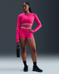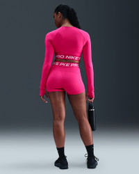 Get your sweat on in this cropped Nike Pro top. Lightweight and stretchy, the smooth fabric dries quickly to help you stay ready when your workout heats up. With a body-hugging fit and soft jacquard elastic band at the hem, you can feel secure as you crush your goals. Product Details - 83% polyester/17% spandex - Machine wash - Imported - Shown: Rush Pink/White - Style: FV5484-666 SIZE & FIT Model is wearing size S and is 5′9″175cm Tight fit: snug and form-fitting
