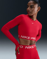 Get your sweat on in this cropped Nike Pro top. Lightweight and stretchy, the smooth fabric dries quickly to help you stay ready when your workout heats up. With a body-hugging fit and soft jacquard elastic band at the hem, you can feel secure as you crush your goals. Product Details - 83% polyester/17% spandex - Machine wash - Imported - Shown: University Red/White - Style: FV5484-657 SIZE & FIT Model is wearing size S and is 5′10″178cm Tight fit: snug and form-fitting