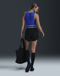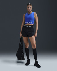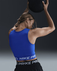 Get your sweat on in this cropped Nike Pro tank. Lightweight and stretchy, the smooth fabric dries quickly to help you stay ready when your workout heats up. With a body-hugging fit and soft jacquard elastic band at the hem, you can feel secure as you crush your goals. Product Details - Body: 83% polyester/17% spandex. Waistband: 63% nylon/21% polyester/16% spandex. - Machine wash - Imported - Shown: Hyper Royal/White - Style: FZ3615-407 SIZE & FIT Model is wearing size S and is 5′11″180cm Tight fit: snug and form-fitting