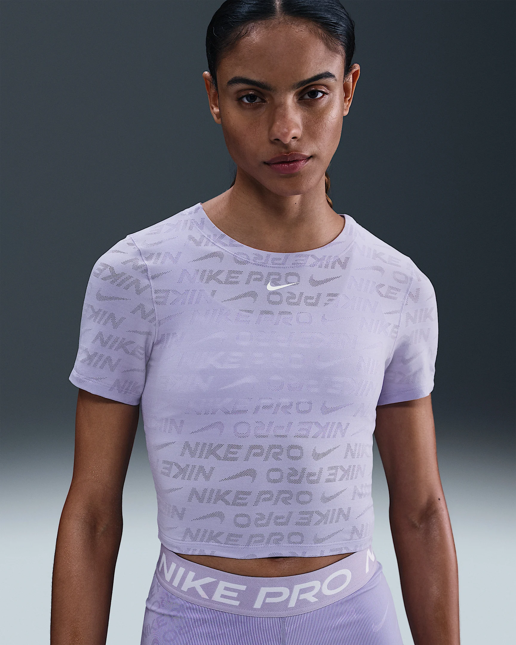 Nike Pro Women's Dri-FIT Short-Sleeve Cropped Jacquard Top