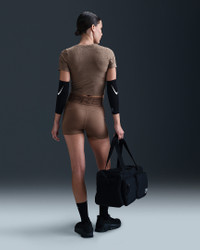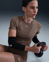 Ready to sweat? This top's breathable jacquard fabric wicks moisture to help keep you dry. A body-hugging fit stretches with you, so you can go all out in confidence. Product Details - 83% nylon/17% spandex - Swoosh logo at center chest - Machine wash - Imported - Shown: Mink Brown/White - Style: HJ2285-214 SIZE & FIT Model is wearing size S and is 5′10″178cm Tight fit: snug and form-fitting