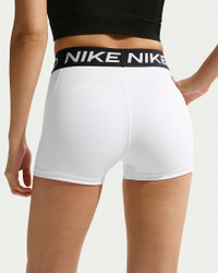 When you're pushing the intensity, you don't want anything to get in your way. The lightweight, stretchy fabric of these supportive shorts wicks sweat to help you stay focused, dry and comfortable during your workout. Benefits - Nike Dri-FIT technology moves sweat away from your skin for quicker evaporation, helping you stay dry and comfortable. - Lightweight and stretchy, the smooth fabric dries quickly to help you stay cool when your workout heats up. - Mid-rise design has a wide elastic waistband that wraps your core in supportive comfort. - Absence of a front seam helps keep the fabric from riding up for a smooth fit. Product Details - Jacquard elastic waistband with "Nike Pro" branding - Body: 78-83% polyester/17-22% spandex; Waistband: 63% polyester/21% nylon/16% spandex - Material percentages may vary. Check label for actual content. - Machine Wash - Imported - Shown: White/Black/Black - Style: IQ1037-100 SIZE & FIT Model is wearing size S and is 5′10″178cm Tight fit: snug and form-fitting