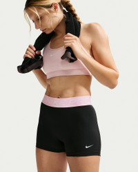 When you're pushing the intensity, you don't want anything to get in your way. The lightweight, stretchy fabric of these supportive shorts wicks sweat to help you stay focused, dry and comfortable during your workout. Benefits - Nike Dri-FIT technology moves sweat away from your skin for quicker evaporation, helping you stay dry and comfortable. - Lightweight and stretchy, the smooth fabric dries quickly to help you stay cool when your workout heats up. - Mid-rise design has a wide elastic waistband that wraps your core in supportive comfort. - Absence of a front seam helps keep the fabric from riding up for a smooth fit. Product Details - Jacquard elastic waistband with "Nike Pro" branding - Body: 78-83% polyester/17-22% spandex; Waistband: 63% polyester/21% nylon/16% spandex - Material percentages may vary. Check label for actual content. - Machine Wash - Imported - Shown: Black/Pink Foam/White - Style: IQ1037-013 SIZE & FIT Model is wearing size S and is 5′10″178cm Tight fit: snug and form-fitting