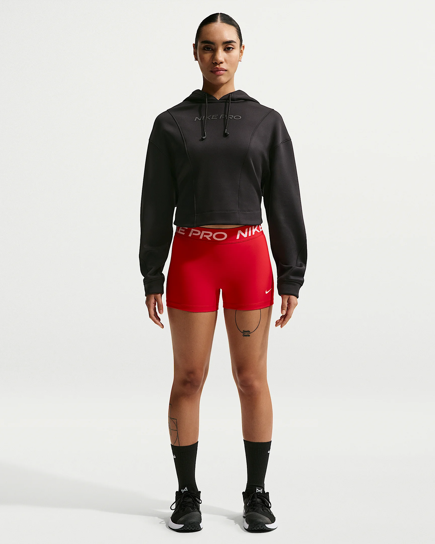 When you're pushing the intensity, you don't want anything to get in your way. The lightweight, stretchy fabric of these supportive shorts wicks sweat to help you stay focused, dry and comfortable during your workout. Benefits - Nike Dri-FIT technology moves sweat away from your skin for quicker evaporation, helping you stay dry and comfortable. - Lightweight and stretchy, the smooth fabric dries quickly to help you stay cool when your workout heats up. - Mid-rise design has a wide elastic waistband that wraps your core in supportive comfort. - Absence of a front seam helps keep the fabric from riding up for a smooth fit. Product Details - Jacquard elastic waistband with "Nike Pro" branding - Body: 78-83% polyester/17-22% spandex; Waistband: 63% polyester/21% nylon/16% spandex - Material percentages may vary. Check label for actual content. - Machine Wash - Imported - Shown: University Red/White - Style: IQ1037-657 SIZE & FIT Tight fit: snug and form-fitting