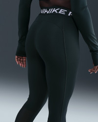 The Nike Pro Leggings are made with sweat-wicking fabric and mesh across the calves to keep you cool and dry. Soft, stretchy fabric moves with you as you sprint, lunge and stretch. This product is made with at least 50% recycled polyester fibers. Benefits - Nike Dri-FIT technology helps you stay dry, comfortable and focused. - A wide, smooth mid-rise waistband feels supportive around your core. - Ventilated mesh panels along the back of the lower legs create airflow for breathability. Product Details - Tight fit for a body-hugging feel - Mid rise - Body: 83% polyester/17% spandex. Mesh: 81% polyester/19% spandex. - Machine wash - Imported - Shown: Seaweed/White - Style: CZ9779-390 SIZE & FIT Model is wearing size XS and is 5′8″173cm Tight fit: snug and form-fitting Medium support: feels ke a snug hold to keep everything in place Fl length: hits below ankle Mid-Rise: sits just below your natural waist (smallest part of your torso)