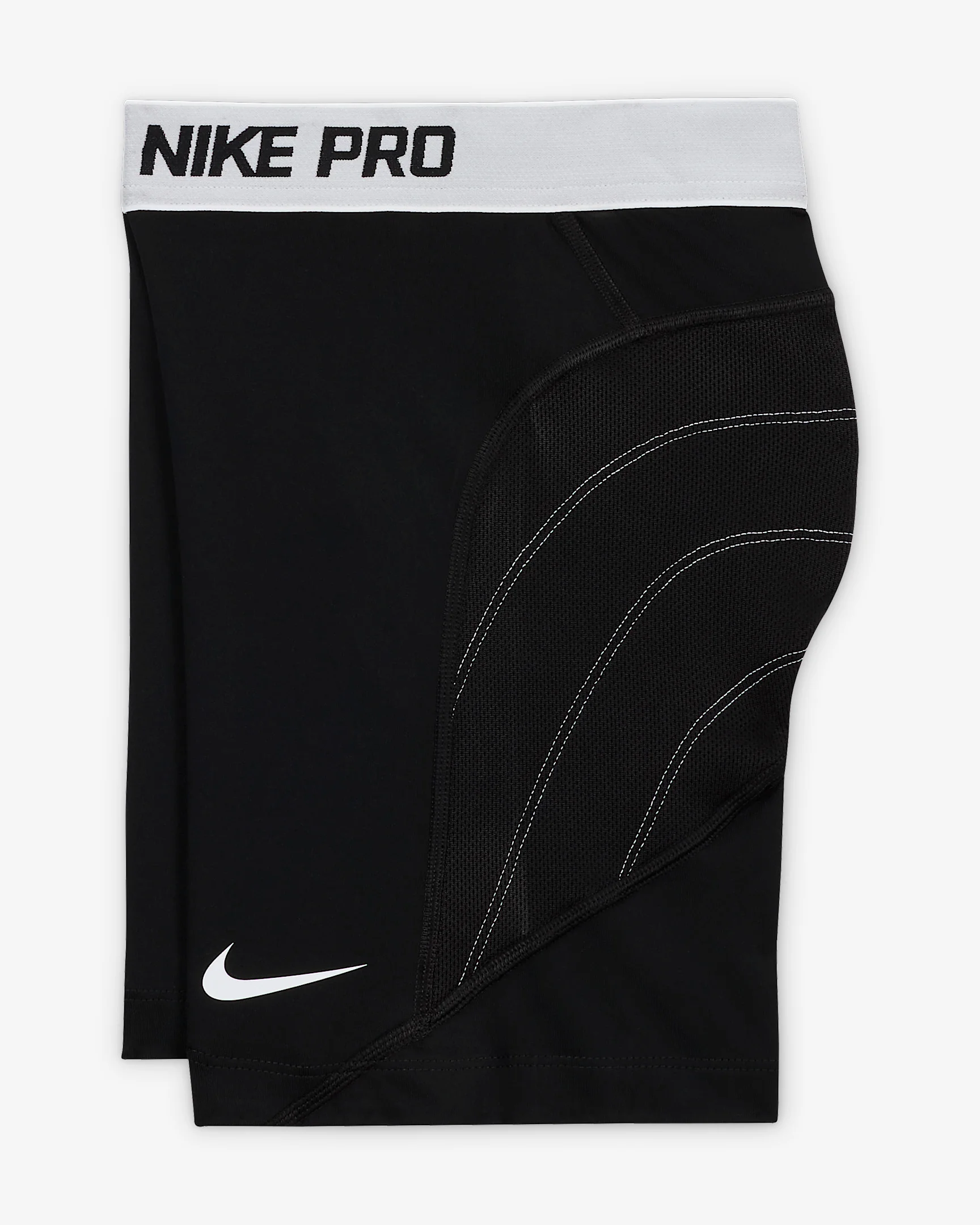 The Nike Pro sliding shorts feature a stretchy design with padded panels to help absorb impact when sliding. Its sweat-wicking technology helps keep you dry and comfortable for practice or game day. Product Details - 82% polyester/18% spandex - Machine wash - Imported - Shown: Black - Style: N1013437-010 SIZE & FIT Capri length: hits at mid calf