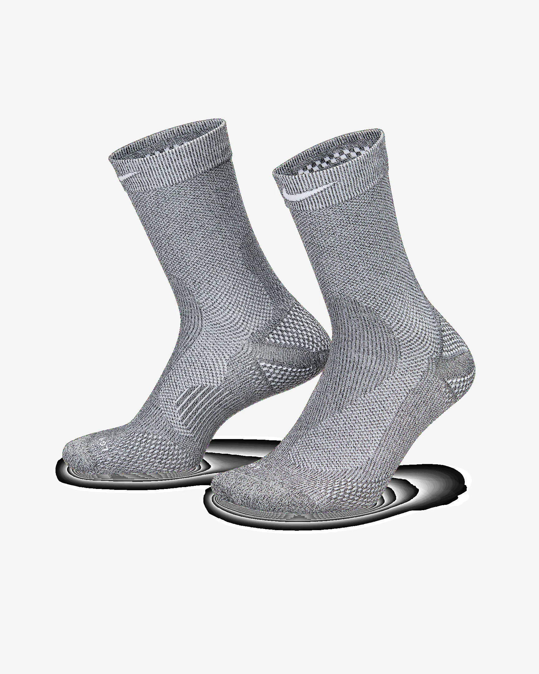 Introducing Nike's newest running socks. Designed to give you a locked-in fit, they feature advanced sweat-wicking technology and strategically placed cushioning and support. This means you can forget the fit and focus on your miles. Plus, there are no tails on the inside, helping to ensure you can run with zero distractions. Product Details - 50% nylon/45% polyester/5% spandex - Machine wash - Imported - Shown: Dark Smoke Grey/Pure Platinum/Light Smoke Grey/White - Style: HV6919-050