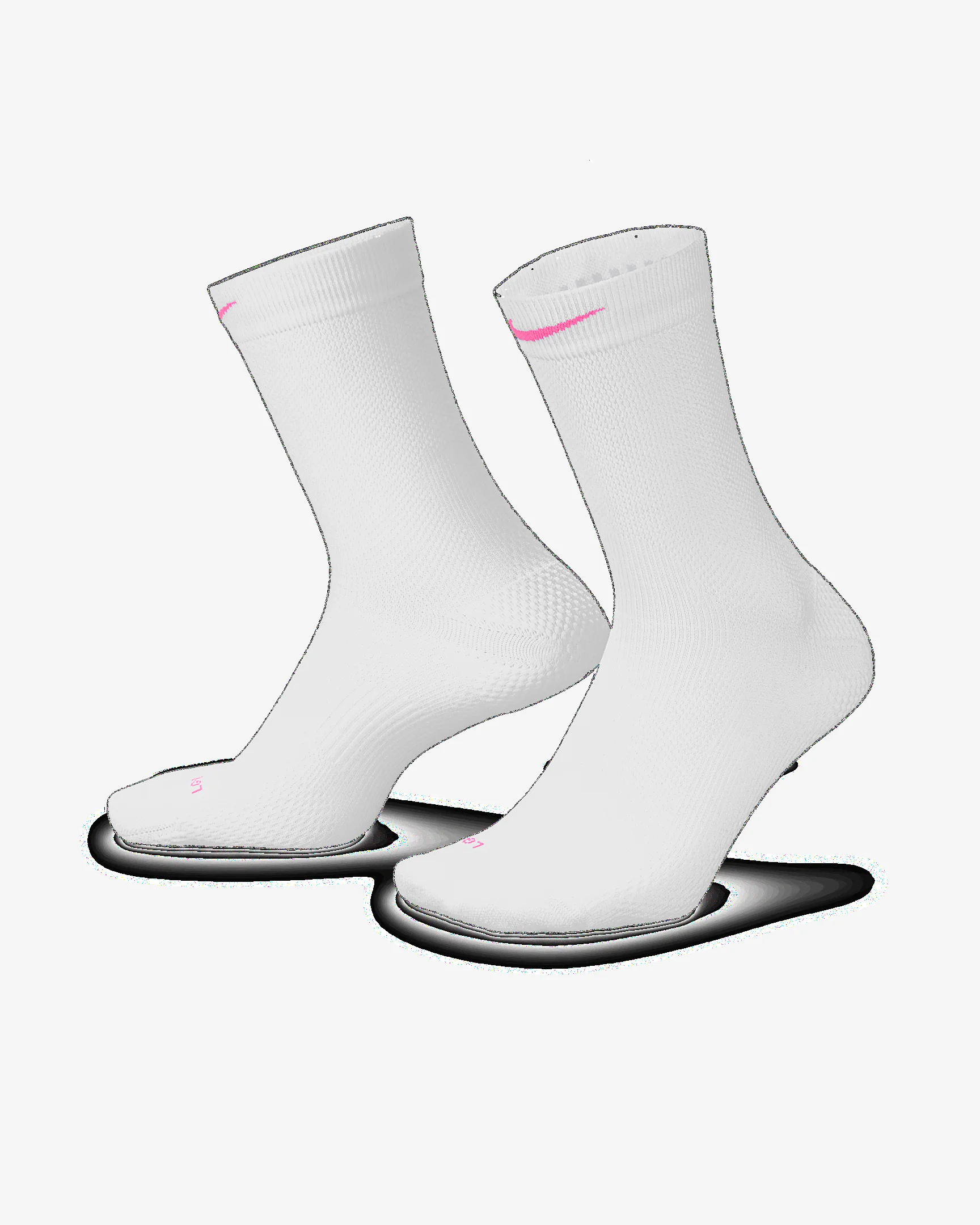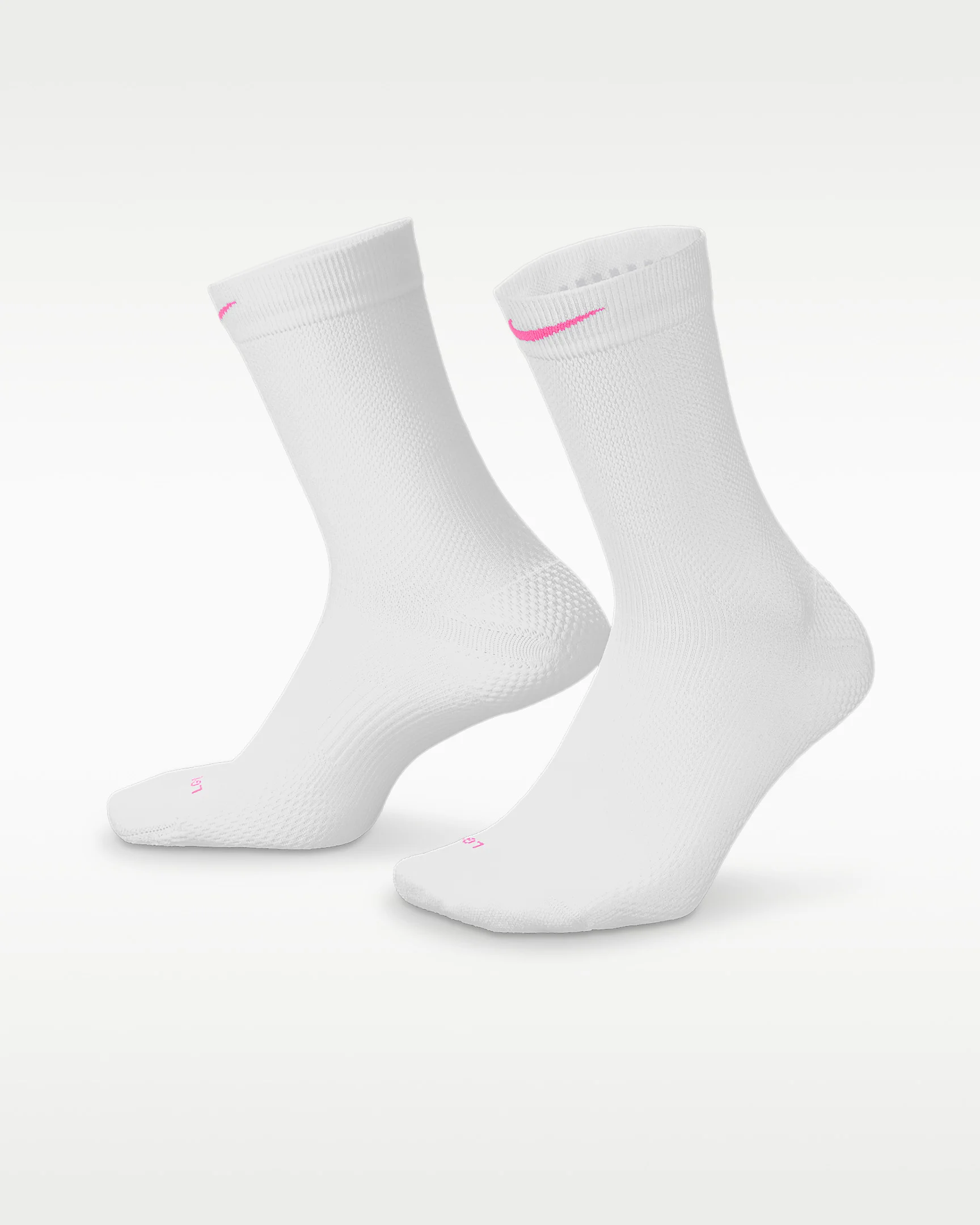 Introducing Nike's newest running socks. Designed to give you a locked-in fit, they feature advanced sweat-wicking technology and strategically placed cushioning and support. This means you can forget the fit and focus on your miles. Plus, there are no tails on the inside, helping to ensure you can run with zero distractions. Product Details - 50% nylon/45% polyester/5% spandex - Machine wash - Imported - Shown: White/Black/Pure Platinum/Hyper Pink - Style: HV6919-101