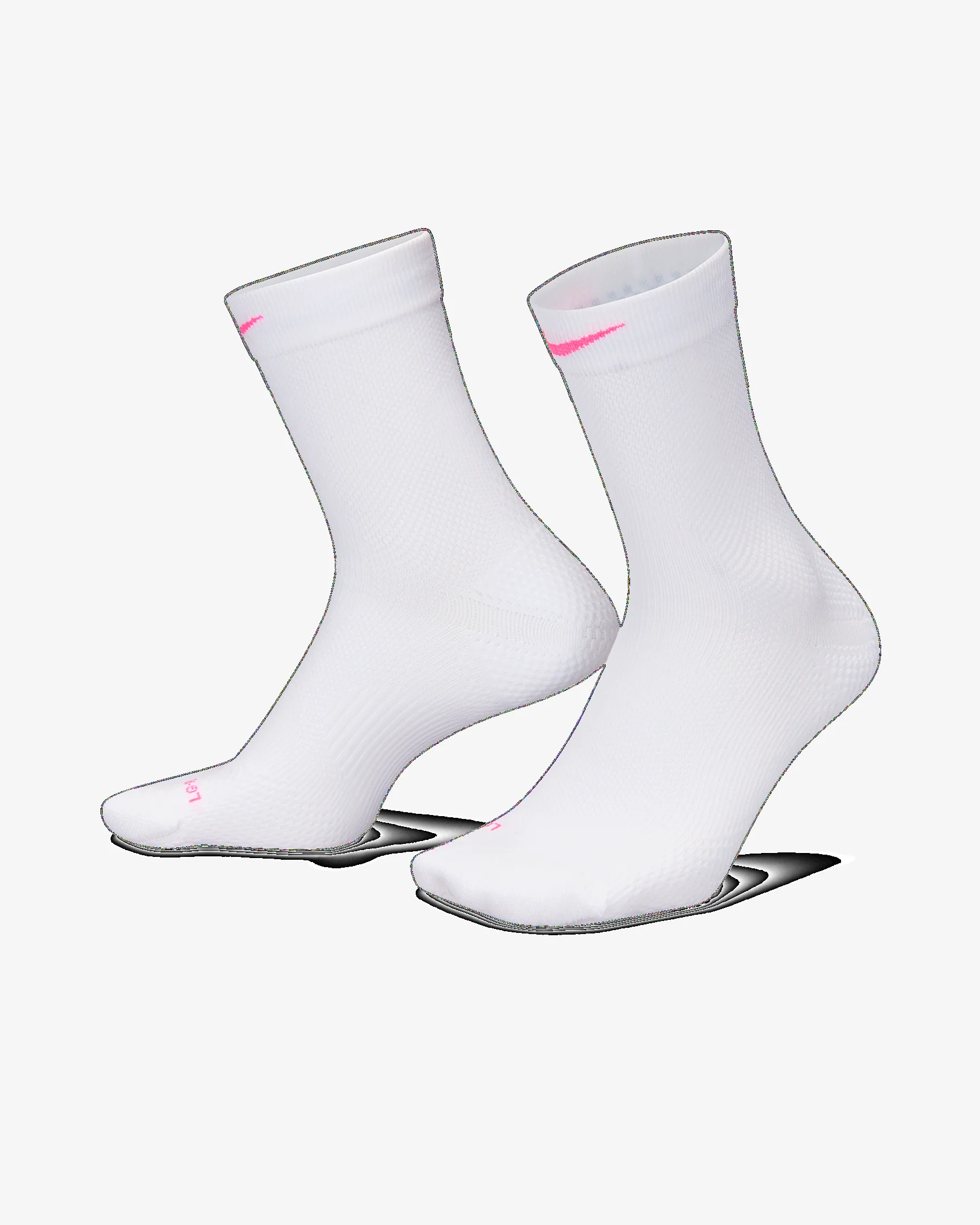 Introducing Nike's newest running socks. Designed to give you a locked-in fit, they feature advanced sweat-wicking technology and strategically placed cushioning and support. This means you can forget the fit and focus on your miles. Plus, there are no tails on the inside, helping to ensure you can run with zero distractions. Product Details - Reflective Details - Not intended for use as Personal Protective Equipment (PPE) - 52% nylon/44% polyester/4% spandex - Machine wash - Imported - Shown: White/Black/Pure Platinum/Hyper Pink - Style: IB6114-101