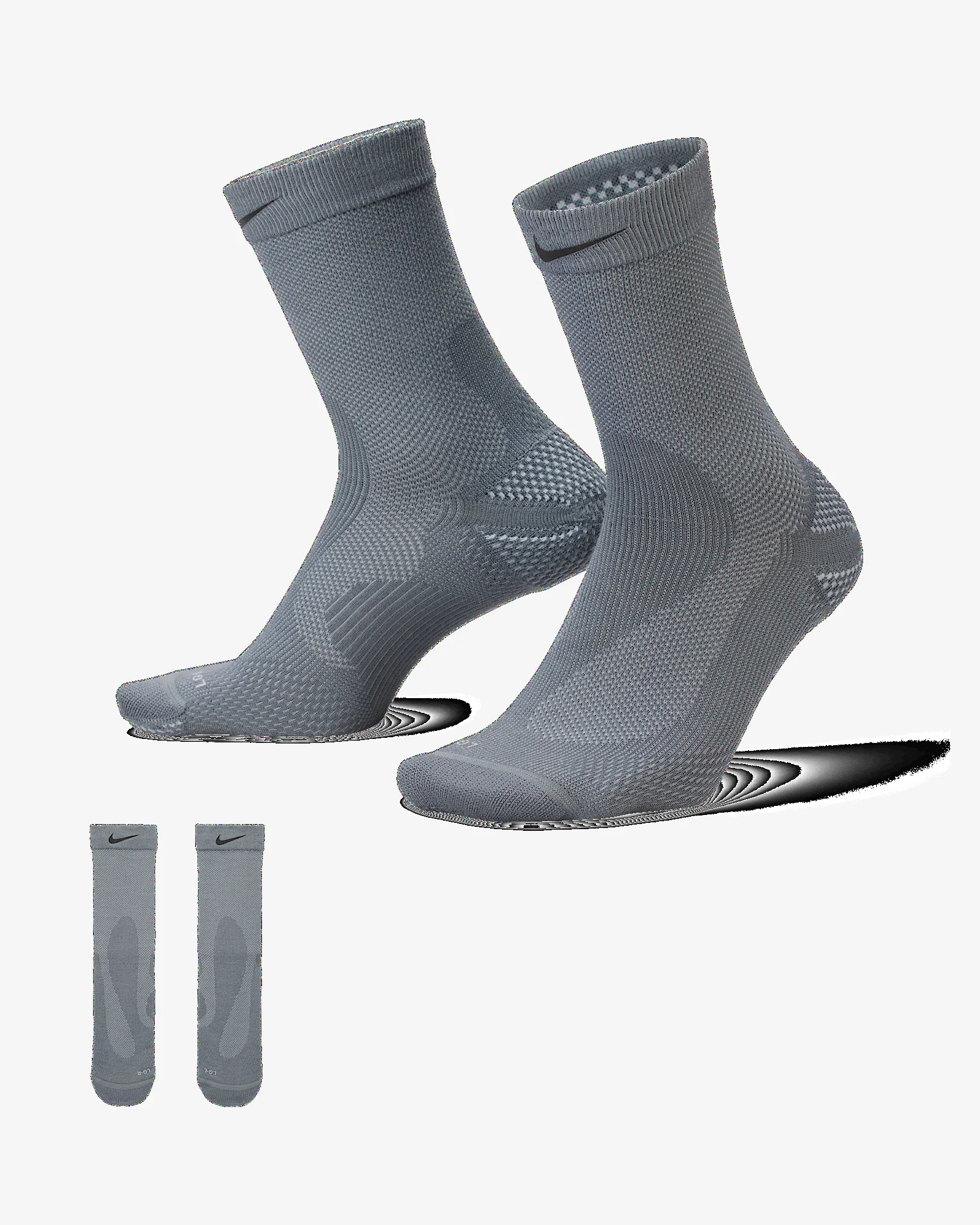 Introducing Nike's newest running socks. Designed to give you a locked-in fit, they feature sweat-wicking wool fabric and strategically placed cushioning and support. This means you can forget the fit and focus on your miles. Product Details - 59% wool/20% nylon/16% polyester/5% spandex - Machine wash - Imported - Not intended for use as Personal Protective Equipment (PPE) - Shown: Smoke Grey/Light Smoke Grey - Style: IF2509-084