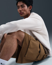 Made from sweat-wicking fabric in a roomy, skate-ready fit, these Nike SB shorts are built for comfort on and off your board. With six pockets to choose from, you'll have plenty of places to keep your essentials. Benefits - Elastic waistband with jacquard weave webbing belt delivers a comfortable fit. - Plenty of pockets, including two secure cargo pockets, give you storage options. - Snaps on the back pockets add extra security. Product Details - Embroidered Nike SB logo - Nike SB flag label - Zipper fly - Button closure - 94% nylon/6% spandex - Machine wash - Imported - Shown: Mosswood Brown/White - Style: HJ2908-235 SIZE & FIT Model is wearing size M and is 6′1″185cm Loose fit: roomy and relaxed