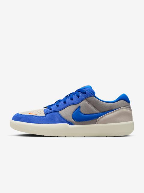 The latest and greatest innovation to hit the streets, the Force 58 gives you the durability of a cupsole with the flexibility of vulcanized shoes. Made from canvas and suede and finished with perforations on the toe, the whole look is infused with heritage basketball DNA. Benefits - Suede and canvas are the perfect pairing of durability and breathability. - Perforations and Swoosh on the toe are a nod to heritage basketball styles. - Rubber sole has a full cupsole stitch for exceptional durability. - Tri-star shapes on the sole expand and contract for better grip and boardfeel right out of the box. - Stretchy inner gusset hugs your foot to help keep your shoe on if your laces blow out. Product Details - Shown: College Grey/Light Orewood Brown/Sail/Racer Blue - Style: DV5477-011 SIZE & FIT Fits small; we recommend ordering a half size up